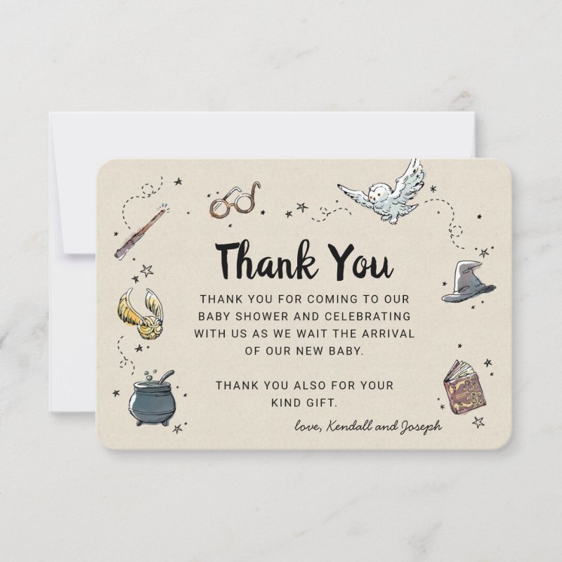 Harry Potter | Baby Shower Thank You Invitation Thank all your family and friends for coming to your Baby Shower with these sweet Thank You notes from Harry Potter. Personalize by adding a personal thank you message. Kommentarer